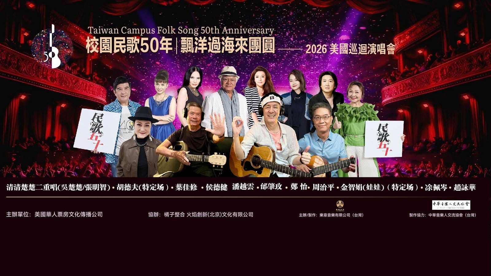 Folk Song 50th 2026 US Tour Featuring 12 legendary folk singers across generations Original production team of the “Taipei Dome Folk Song Grand Reunion” A...